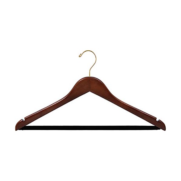 The Great American Hanger Company Wooden Suit Hanger w/Velvet Bar, Walnut Finish with Brass Hardware, Box of 100