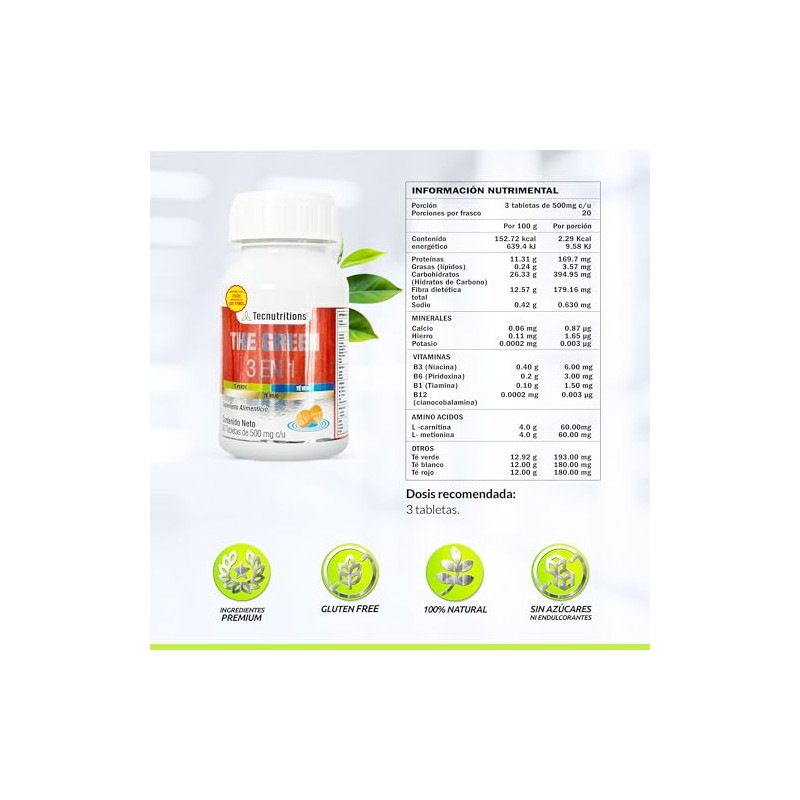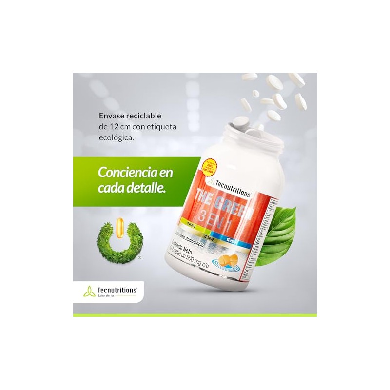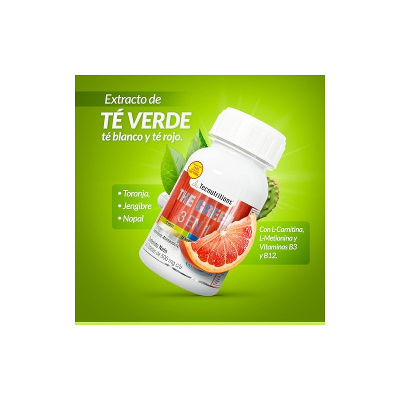 TECNUTRITIONS - The Green 3 en 1 - Suplemento Natural para Apoyo Metabolico y Energia - Te Verde, Blanco, Rojo, Toronja, Jengibre, Nopal, L-Carnitina y Vitaminas B - Presentacion con 120 Tabletas de 500 mg c/u. TECNUTRITIONS.. π Reconocido por su excelente relación calidad-precio. Materiales de alta gama y acabados premium. π― Producto más buscado del mes. Ideal para quienes buscan lo mejor en calidad y estilo. Producto auténtico con satisfacción total asegurada. ¡No te quedes sin el tuyo y aprovecha esta oportunidad única!