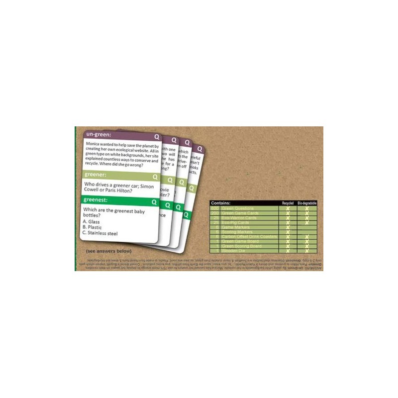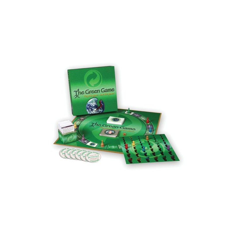 Play this game and save the planet. Everyone wants to save the planet, but are your efforts helping it or hurting it? The Green Game is an entertaining, enlightening and sometimes alarming way to examine the ecological facts and myths that face us today. Made from 100% recycled material, soy inks and wood composite game pieces, it is 99.8% bio-degradable and is carbon neutral due to the six drink coasters included that will actually sprout and grow wild flowers when planted in soil. The Green Game contains almost everything you ever wanted to know about saving the Earth, but didn't have years to find out.