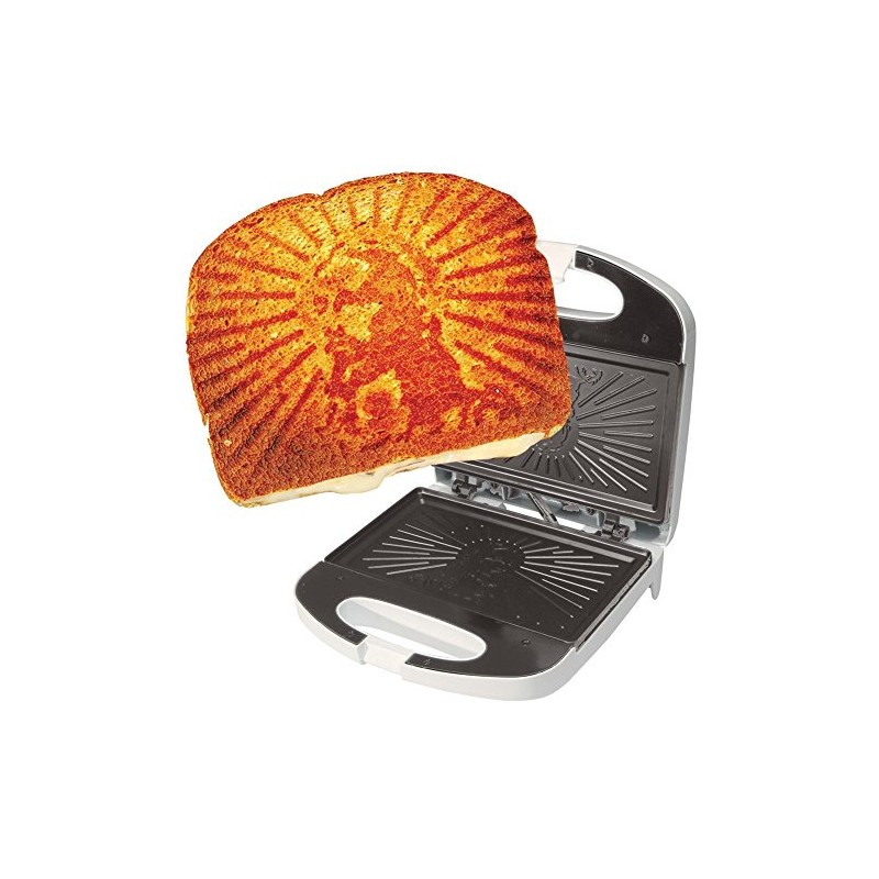 The GRILLED CHEESUS is an electronic sandwich press that toasts the face of Jesus onto your sandwich bread. Inspire your family at the dining room table or impress your friends at a party. However you slice it, the GRILLED CHEESUS lets you bring little grilled miracles to mealtime, snack time, or anytime.