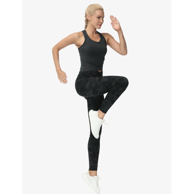 THE GYM PEOPLE Women's Cross Waist Workout Leggings Tummy Control High Waisted Athletic Yoga Pants with Pockets Black Camo