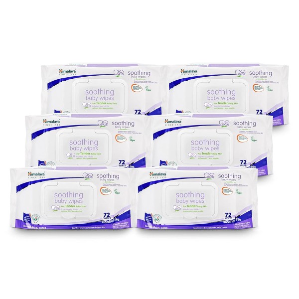 The Himalaya Drug Company Soothing Baby Calming Wipes for Soft, Clean, and Sensitive Skin, 72 Wipes, 6 Pac