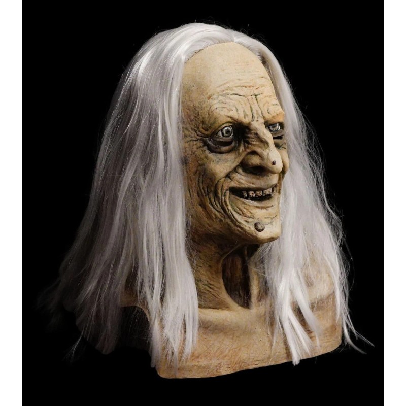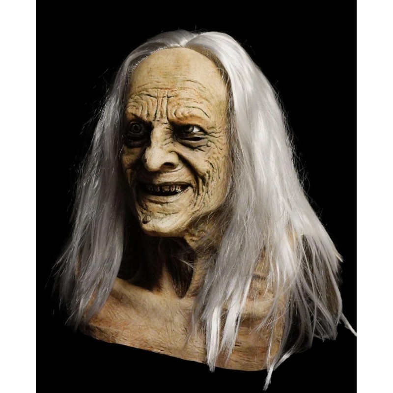 Deep in the heart of a dark, unexplored forest, a coven of witches cooks up a dastardly brew. Bubbling in a broth made from venomous snake blood and the rancid milk of feral cats, they dump in fresh meat; mutilated woodland animals, and severed human limbs. This Witchy Woman wants you for her grotesque soup. Swooping down on her broom, you feel her gnarly jagged fingernails across the back of your neck. Whether you're casting spells on neighbors who have crossed you, terrifying local children on a scary autumn hayride, looking for an amazing character for the next costume party, or adding to your collection of macabre merchandise, you'll find this Horror Dome original is a well-made mask with intricate detailing. Featuring glossed-over, dead-seeming eyes, wiry cobweb colored hair, a caved-in throat, and rotting, disgusting teeth, this sinister Halloween mask will turn heads. Heat up the cauldron and begin making your own terrible potion today.