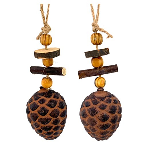 THE JOY TREE Wood Pine Cone Ornaments - Set of 2 Christmas Tree Holiday Decor