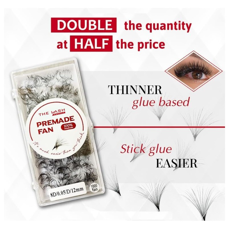 THE LASH SUPPLY THE LASH SUPPLY 1000fans 3D 4D 5D 6D 7D 8D 10D 12D 14D Wispy Premade Fan Eyelashes, C/CC/D Curl, 8-20mm Length, 0.03/0.05/0.07 Thickness, Promade Loose Eyelash Extension Fans, Mixed Length Pack