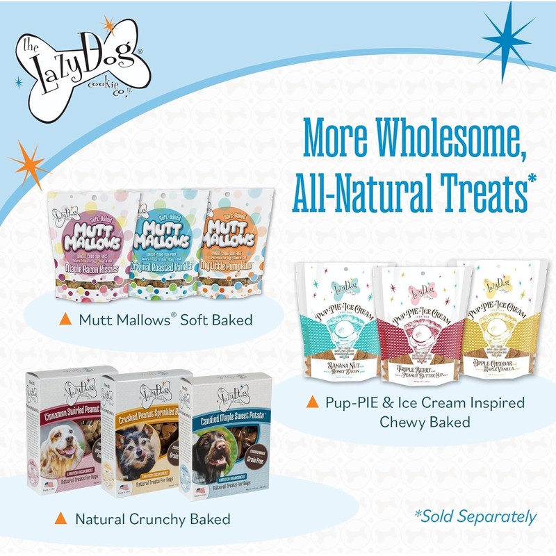- Human Grade Ingredients C Our wholesome, natural and yummy treats are overflowing with puppy love. Lazy Dog pies are corn free, soy free, wheat free and dairy free. A cheerful get well gift basket item for sensitive stomachs or older dogs.