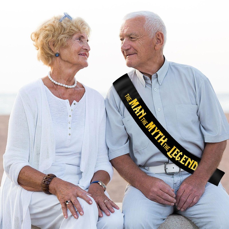 - 👑【Gift for Men】Makes a thoughtful present for a beloved families or friends, You can upgrade your party. birthdays, bachelor parties, and retirements are a long awaited milestones and what better way to celebrate than with our premium quality " The Man The Myth The Legend " gold glitter sash.