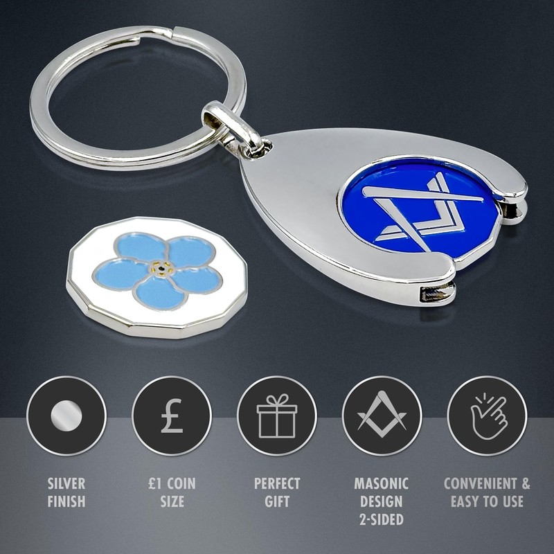 - Masonic Trolley Keychain and Coin: Crafted with precision and adorned with Masonic symbolism, this Forget Me Not Trolley Keychain & Coin is an elite addition to our Freemasonry collection, making it a meaningful and stylish accessory for Freemasons