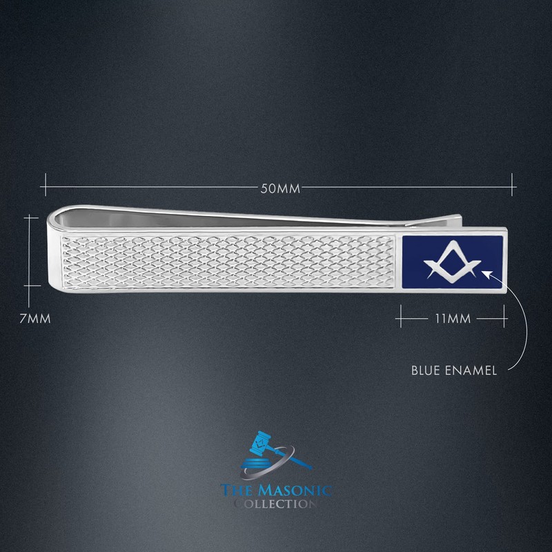 The Masonic Collection - Freemasons Blue Tieslide With Silver Plating - Diamond Cut Pattern - Comes in Beautiful Velvet pouch - A Perfect Masonic Gift for Men
