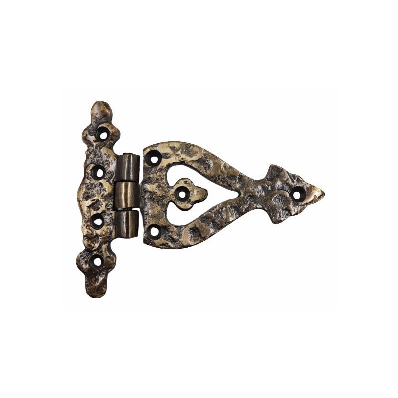 The Metal Magician Antique Brass T-Strap Hinges, Pack of 4 Heavy Duty Barn Door Hinges (5" x 4.5"), Gate Hinges for Wooden Fences Heavy Duty, Decorative Hinges, Farm Gate Hinge (Antique Brass)
