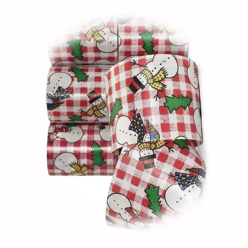 The New 7 Spls Christmas Snowman Red White Gingham Country Flora Satin Acetate Ribbon Perfect for Crafting, Gift Wrapping, and Decorating Ribb1w01678