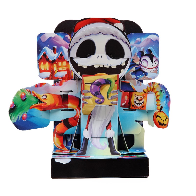 - TWO FIGURES IN ONE: With the flip of a switch, this pop-up Jack Skellington transforms from the classic character in his iconic pinstripe suit to a festive Jack dressed up as Sandy Claws ready to liven up any holiday festivities.