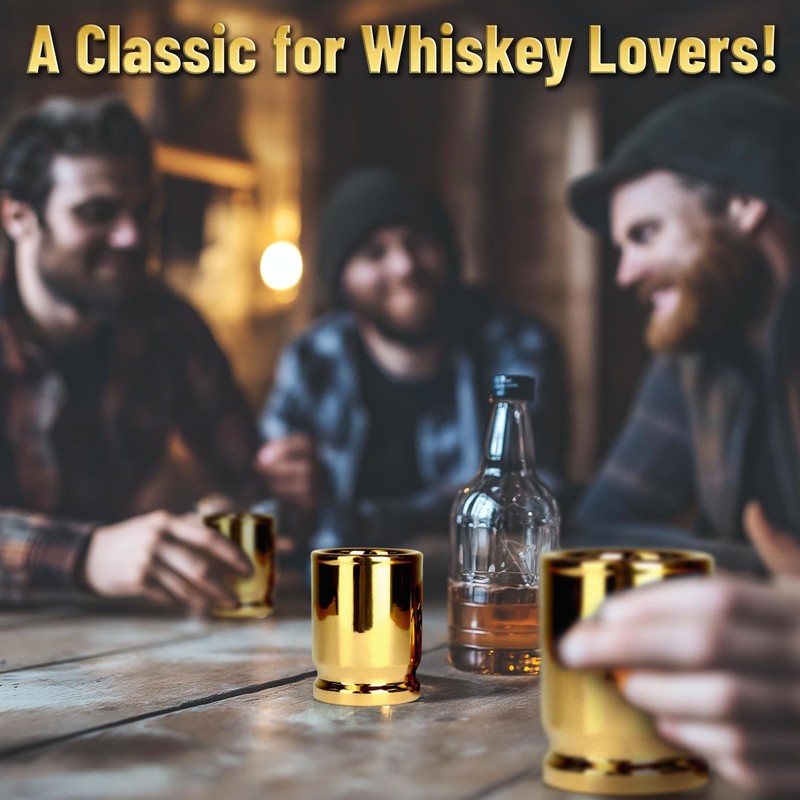 - NOVELTY BULLET SHOT GLASS: This great looking set of 2 ceramic shot glasses are shaped like shiny gold 50 cal bullet casings that will make a great addition to your home decor, mancave, bar, or party.