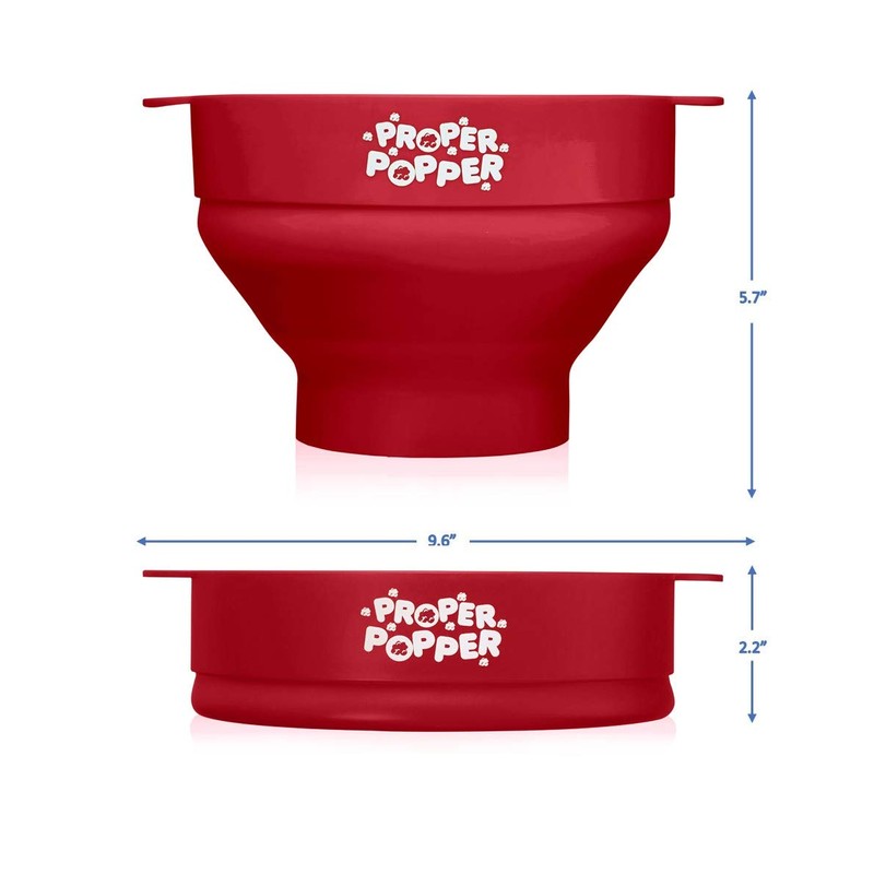 - Lightweight & Easy To Clean & Store- You can easily collapse the bowl from a height of 5.7” to 2.2” allowing the bowl to fit in almost any kitchen drawer or pantry. Perfect for college dorms. The slim, lightweight and collapsible design makes it great for traveling or limited pantry space. The Proper Popper is super durable, eco-friendly and dishwasher safe. It’s made of high quality silicone which makes it easy to hand wash. Save yourself the trouble of rough scrubbing other popcorn makers.