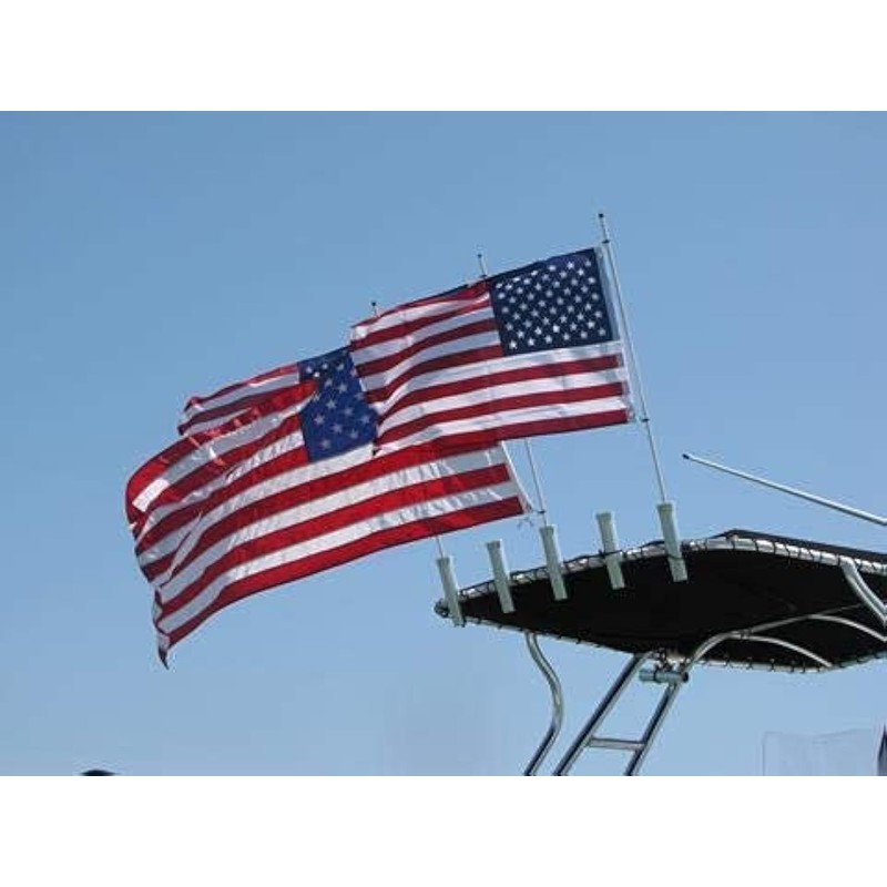 The original Rod Holder Flag Pole! Do not accept copies. We have been manufacturing these flag poles in the USA from materials sourced from US owned and operated companies since 2011. Fits in your boats rod holder or rocket launcher. Solid 1/2" fiberglass staff with a gimbal base for a secure fit. Includes flag pole, one pair of adjustable clips and a bungee to secure your flagpole. Thousands sold. Lifetime warranty. Our new and improved base provides an even better snug fit and wont rattle like the copies using cheap PVC.