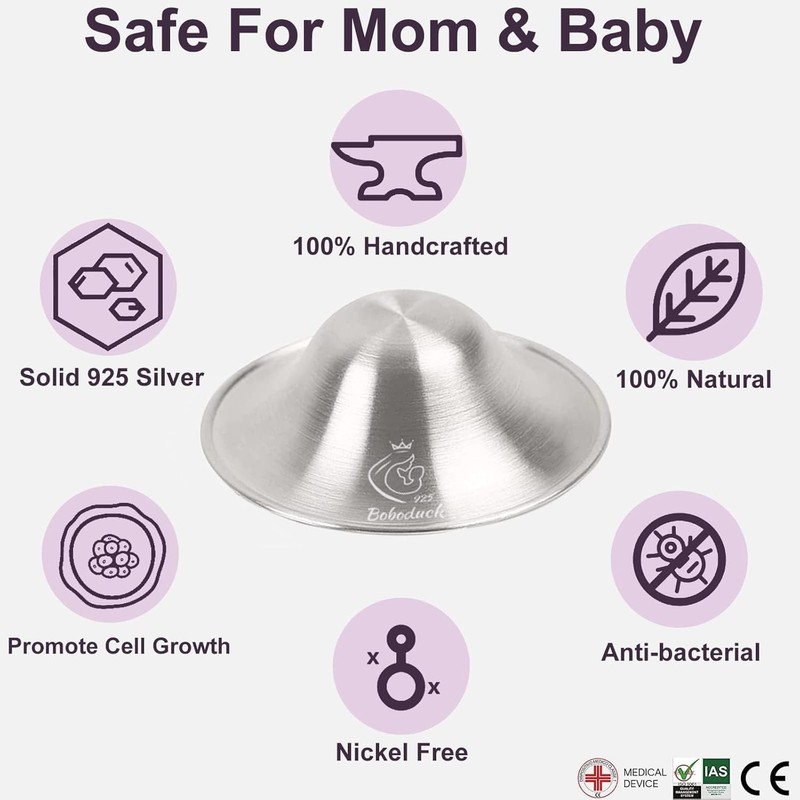 - Essential for Breastfeeding: Silver nursing cup are ergonomically made and carefully handcrafted to fit under any bra size.They are safe, comfortable, and hygienic, with a rounded peak that fits the nipple gently without pressure.The nipple shields provide reliable care, easy use, and lasting comfort, all packed in a stylish box.