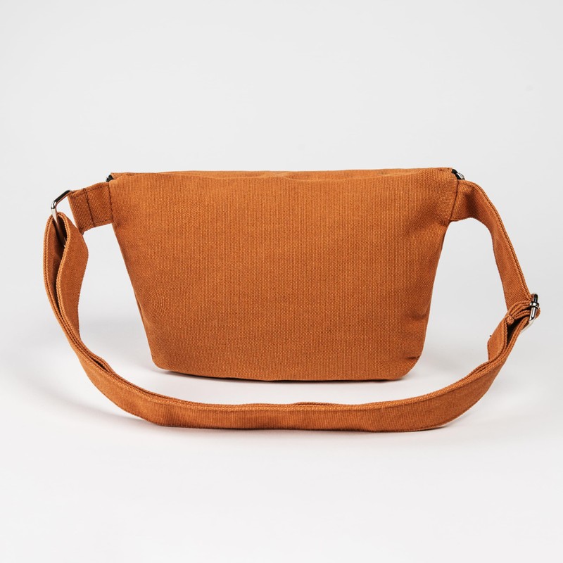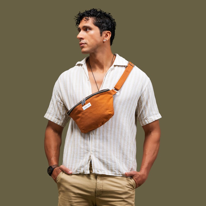 The Peacock Crew Camel Brown Fanny Pack - Cotton Waist Bag for Men & Women – Adjustable Crossbody Sling Belt Bag with Dual Zippers for Left & Right Hand Use – Casual Travel Shoulder Pouch – Nomad