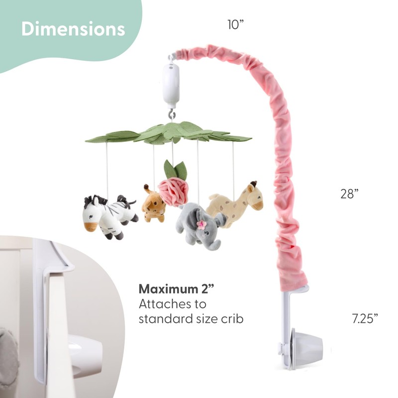 The Peanutshell Crib Mobile for Girls - Soft Pink Musical Baby Crib Mobile with 12 Lullabies, Cute Animal Baby Wildest Dreams Nursery Decor
