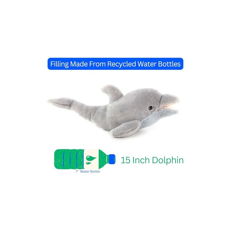 The Petting Zoo Dolphin Stuffed Animal Plushie, Gifts for Kids, Earth Keeperz Sealife Animals, Zoologee Grey Dolphin Plush Toy, 15 inches