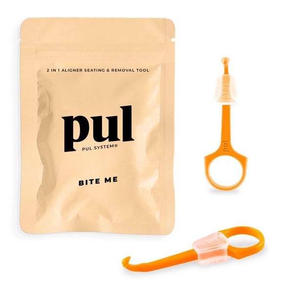 - Fácil de usar: para quitar alineadores, simplemente utiliza el anillo de dedo o los hombros para ayudarte a agarrar el mango de la pulTOOL, cierra el gancho de la herramienta a la parte posterior de tu alineador y PUL suavemente hacia adelante hasta que el alineador se desenganche de accesorios o dientes. Para alineadores de asientos, simplemente coloca alineadores en los dientes. Desliza la herramienta masticable hacia abajo hacia el gancho de la PULTOOL y mastica de un lado de la boca a otro, centrándose en áreas más difíciles.