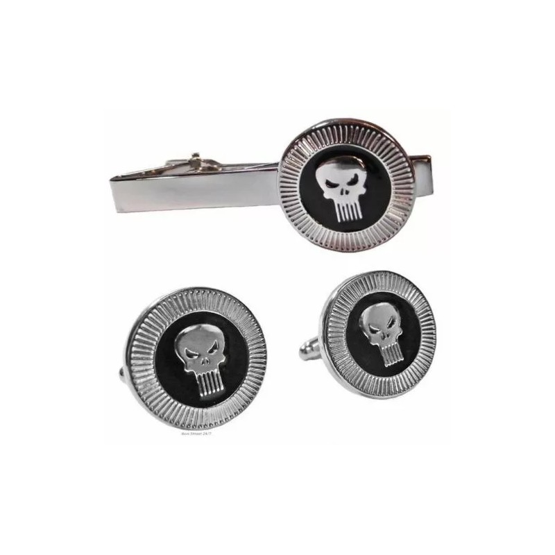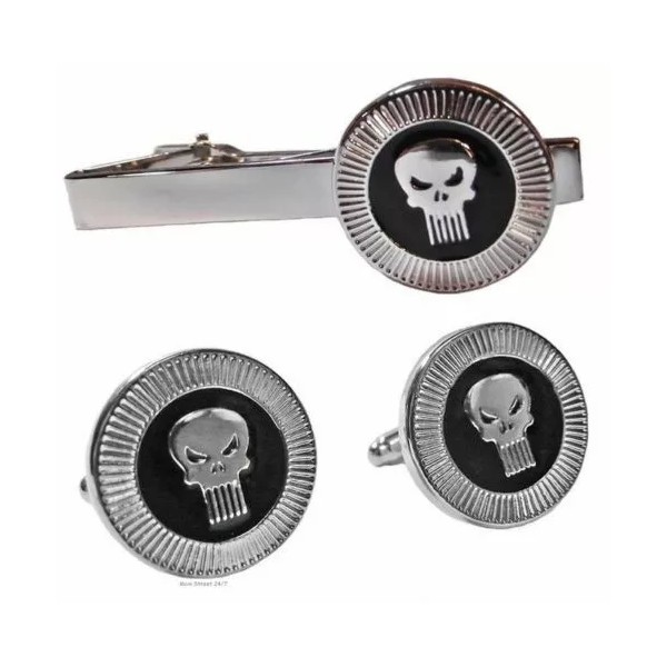 The Punisher Skull Logo Enamel Metal Cufflinks and Tie Clip Set
