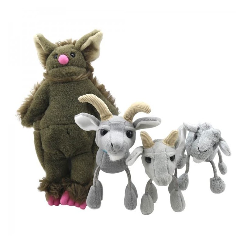 - Set comprises four finger puppets - the Troll and 3 x Goats