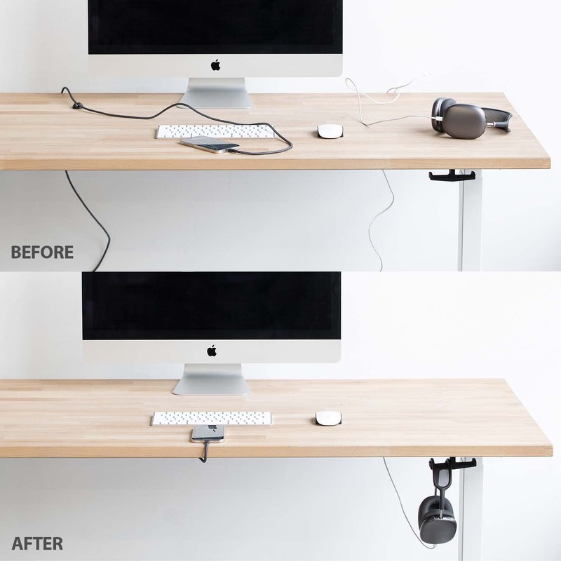 QuickDraw is the first adjustable under-desk cord mount. It keeps your cords hidden, easy to access, & eliminates clutter. Lets you charge where actually use your phone - right in front of you (not at the back or side of your desk like other cord mounts). Reroutes cord clutter under your desk. Easily adjusts to set the exact length of cord you want. Designed to use without looking. And ships with 2 cord clips to keep excess cord taut and away from your legs. Its the best upgrade for your desk.