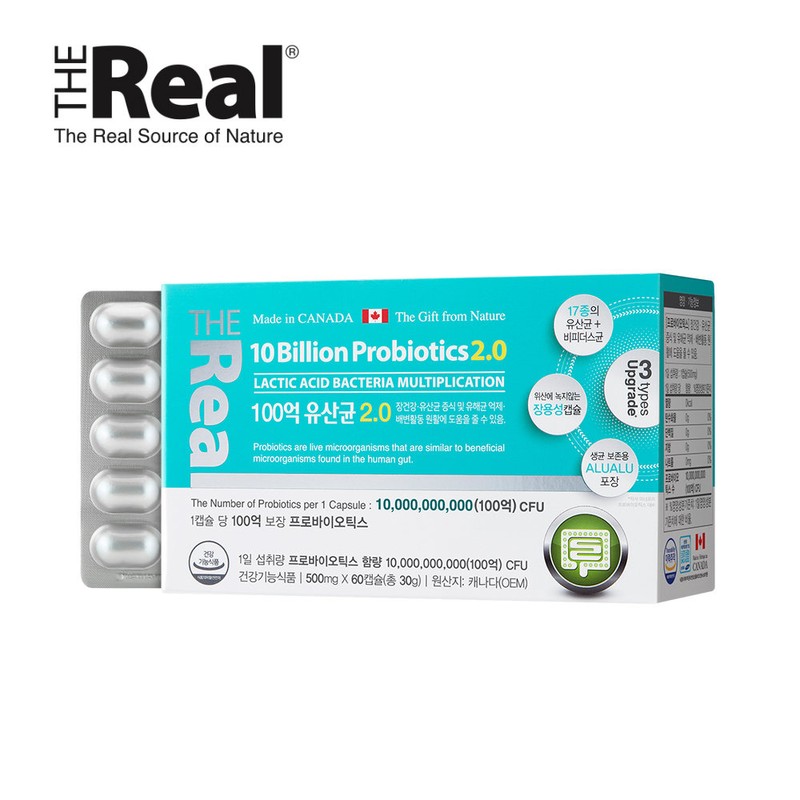 The Real 10 Billion Lactobacillus 2.0 Enteric Coated Probiotics 60 Capsules / 더리얼 100억 유산균 2.0 장용성 프로바이오틱스 60캡슐