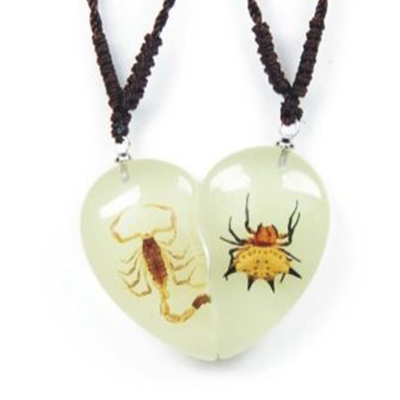 - Real Scorpions in two 1.25" hard resin pendants that form a heart when put together and suspended on two adjustable cord necklaces.