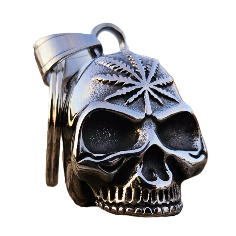 THE RIDE BELL Skull 3-D Weed Leaf RIDE BELL 4 ALL Harley Deluxe Bagger Softail Deluxe Biker