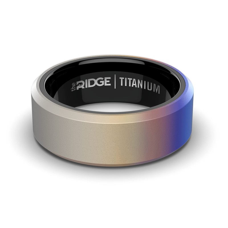 The Ridge Burnt Titanium Beveled Ring Comfort Fit Wedding Band - 10
