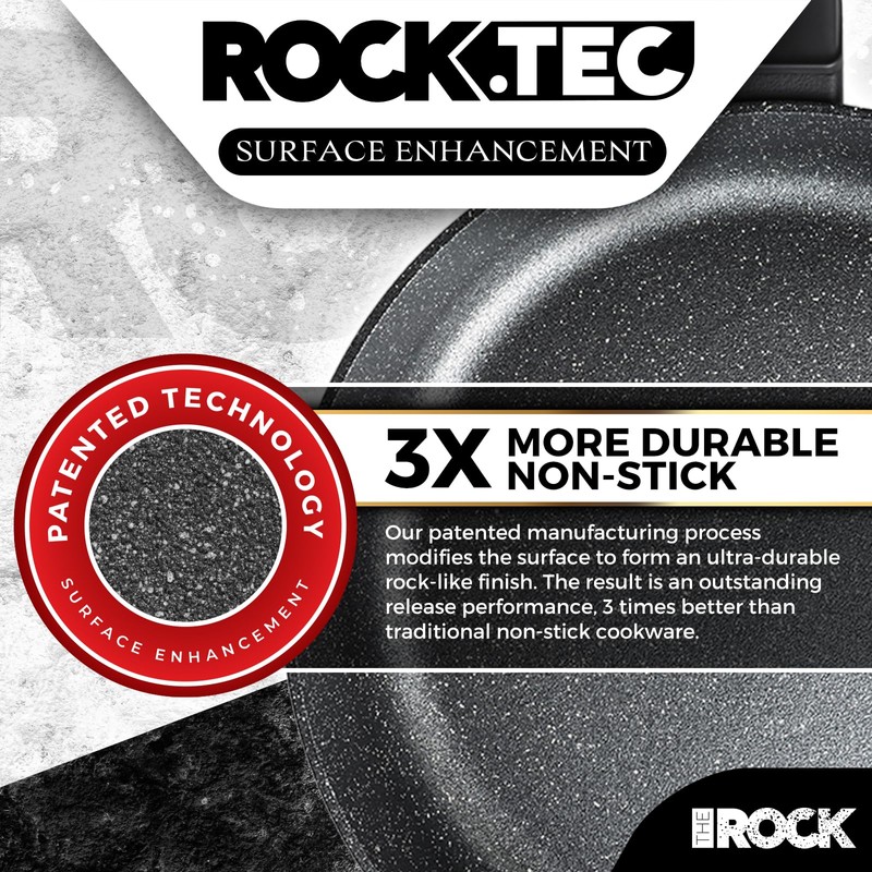 - Never Warps: Patented ROCK.TEC technology and innovative aluminum alloy prevent warping under high heat, ensuring durability and stability in your nonstick frying pan