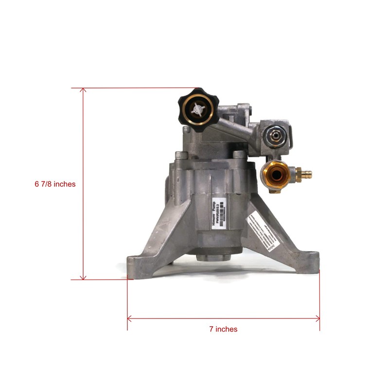- Pump mounts vertical & is rear facing (water inlets/outlets come out of the rear of the engine). Pump head can be flipped. Thermal relief valve comes intalled. This is a sealed unit, no oil maintenance required. Brass outlet tube MUST be removed if quick-connect is being used. Please note it is not recommended to run any pressure washer pump above its maximum PSI rating. Doing so can result in damage to the pump (not covered by warranty) and/or serious bodily injury