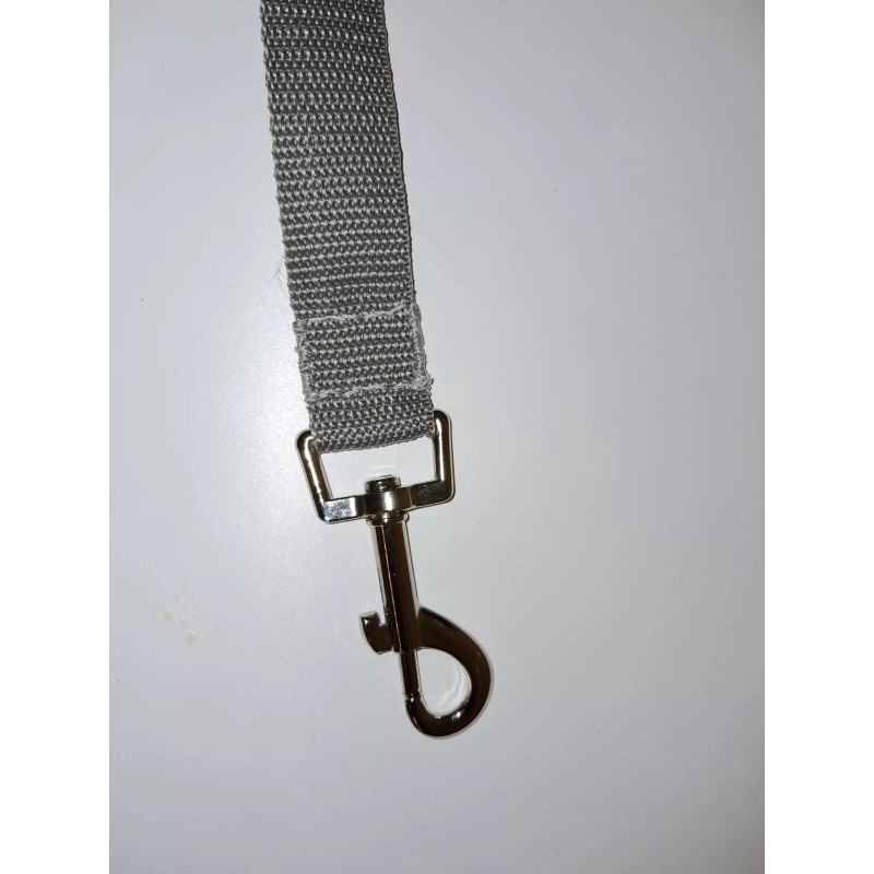 Hi, THIS IS A NEW GRAY SEAT BELT LEASH! Thank you for stopping by. I made this style of leash for my little dog. She was always trying to jump around the car as we would be driving. Then it hit me. I need an easy way to keep her from running around the car and keep her from running out of the car when we would stop. An to top it off, I never forget it when we go in a different car. This is because the seat belt part is on the leash and not a second part that stays with the car. One less thing to think about.The Seat Belt Leash. Overall, leash is 60" long with a 1" wide nylon strap. The seat belt over all is about 20" from your pets collar to the seat belt D-clip, and it is not adjustable. We use MIX 150-lbs D-clips for the area to hook on your pet and on your seat belt. This leash has a 6-3/4" hand loop to hold as you are walking your pet. Works with larger pets. This leash works well with dogs that like to run around the car when it's moving. When you get to your walking area, just un-clip from seat belt, and your pet's leash is already to go walking. The Seat Belt Leash part is only to be used when you are in the car and it is moving! If you leave your pet in the car to go into the store or anywhere. PLEASE PLEASE PLEASE Just un-ckip the leash from the pet's collar so your pet can move free around the parked car. NEVER leave your pet on the leash alone in the car!I have found this leash to be easy to use and my dog feels no different with this Seat Belt Leash or her old leash without the seat belt D-clip. Now, as I drive, she stays in her seat and no more running around the car. She jumps out when I am ready for her to jump out. I just put my hand thru the hand loop, and then I un-clip her from the seat belt, and then we walk.