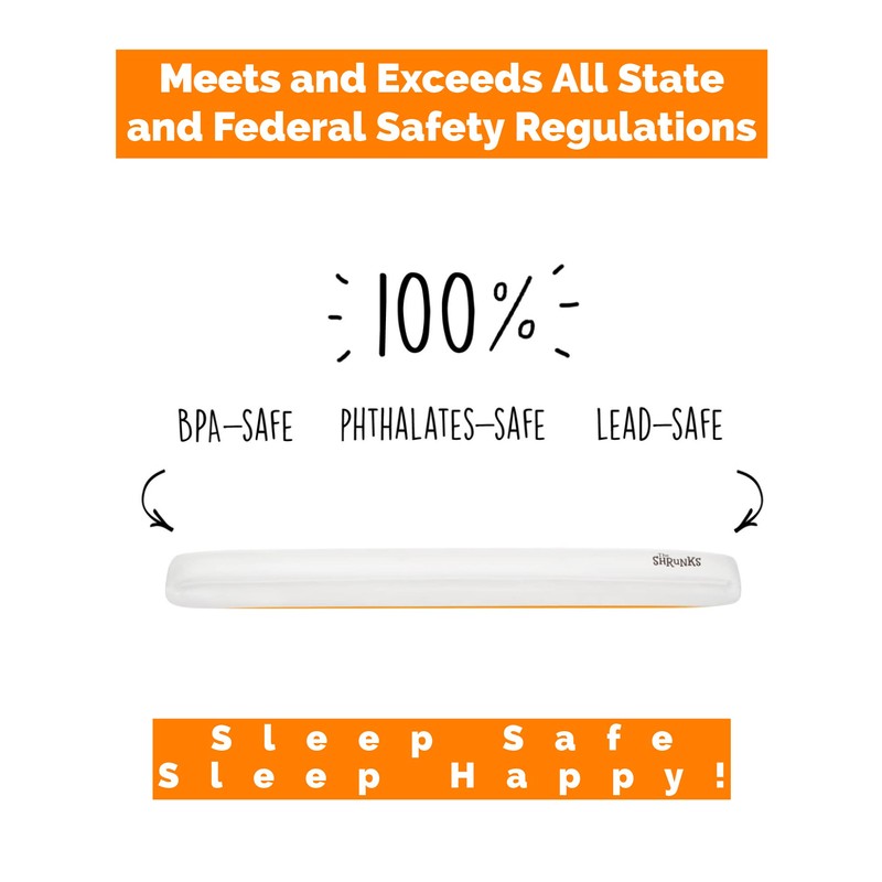 • PASSES ALL FEDERAL SAFETY STANDARDS: The Shrunks Travel Bed Rail does not contain dangerous Polyurethane Foam which children, toddlers and infants are known to be vulnerable to exposure. Our Bed Rails are BPA, Phthalate and Lead safe. Shrunks bed rails are made from durable PVC with reinforced seams to prevent air leaks. Inflatable bed bumpers are soft and more comfortable than metal Bed Rails. Children often get bumps and bruises from crashing into traditional metal Bed Rails while sleeping.