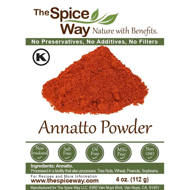 - ANNATTO (ACHIOTE) POWDER - The Annatto is used for its unique peppermint nutmeg flavor as well as its ability to give any sauce an inspiring yellow-red color.