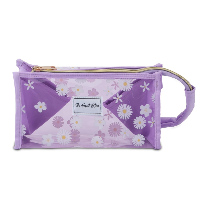 The Spirit Store Cosmetic Bag Toiletry Bag Leather Large for Travelling Clear Practical for Folding, Daisy Lilac Transparent, Cosmetic bag