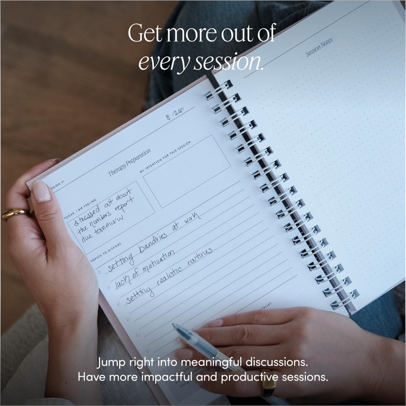- 33 GUIDED SESSION ENTRIES for before, during, and after your therapy sessions