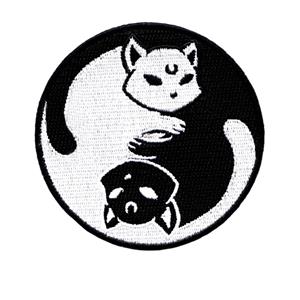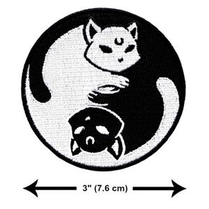 The Tiny Dragon YIN YANG CAT IRON ON PATCH 3" Round Embroidered Applique Black White Kitty Tao