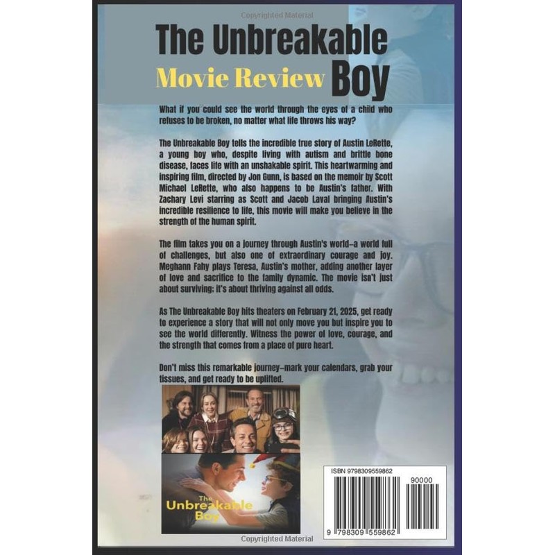 THE UNBREAKABLE BOY MOVIE REVIEWWhat if you could see the world through the eyes of a child who refuses to be broken, no matter what life throws his way?The Unbreakable Boy tells the incredible true story of Austin LeRette, a young boy who, despite living with autism and brittle bone disease, faces life with an unshakable spirit. This heartwarming and inspiring film, directed by Jon Gunn, is based on the memoir by Scott Michael LeRette, who also happens to be Austin's father. With Zachary Levi starring as Scott and Jacob Laval bringing Austin's incredible resilience to life, this movie will make you believe in the strength of the human spirit.The film takes you on a journey through Austin's world—a world full of challenges, but also one of extraordinary courage and joy. Meghann Fahy plays Teresa, Austin's mother, adding another layer of love and sacrifice to the family dynamic. The movie isn't just about surviving; it's about thriving against all odds.As The Unbreakable Boy hits theaters on February 21, 2025, get ready to experience a story that will not only move you but inspire you to see the world differently. Witness the power of love, courage, and the strength that comes from a place of pure heart.Don't miss this remarkable journey—mark your calendars, grab your tissues, and get ready to be uplifted.