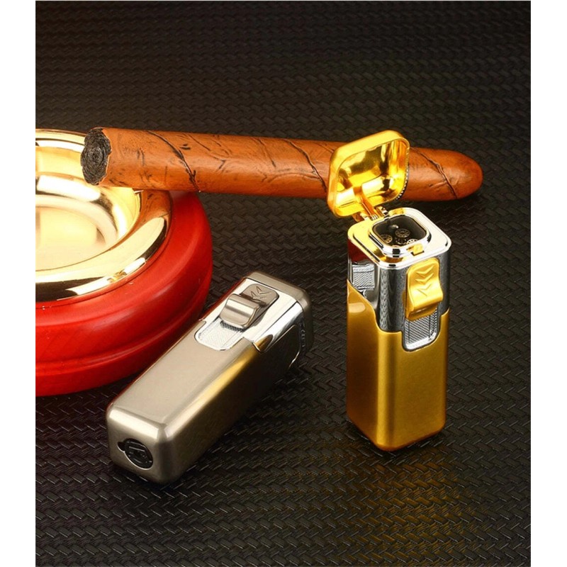 The Vintage Lighter Torch Lighter Quad 4 Jet Flame Torch Lighter Refillable Butane Cigar Lighter - Gold