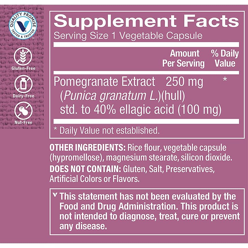 The Vitamin Shoppe Pomegranate Extract 250MG, Antioxidant That Supports Cellular Health, Superfood (100 Veggie Capsules)