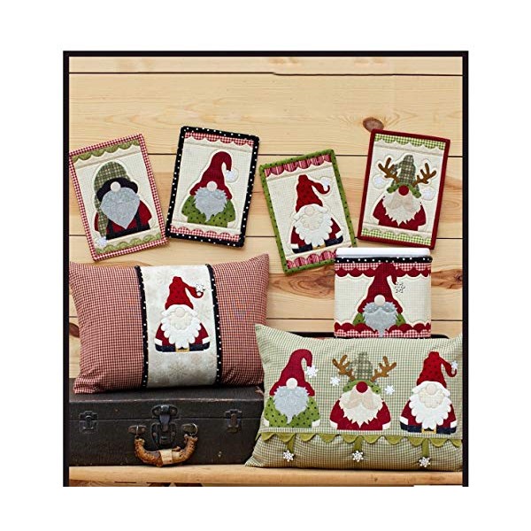 • Pattern includes instructions for mug rugs, canister wrap, pillow cover, pillow wrap, & 4 gnome appliqué patterns