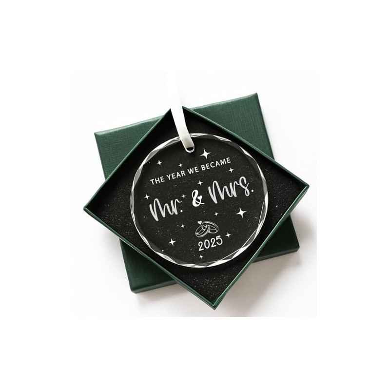 'The Year We Became Mr & Mrs' Transparent Glass Ornament with Gift Box- Perfect for Bridal Shower & Couple Gifts,Wedding Gifts 2025