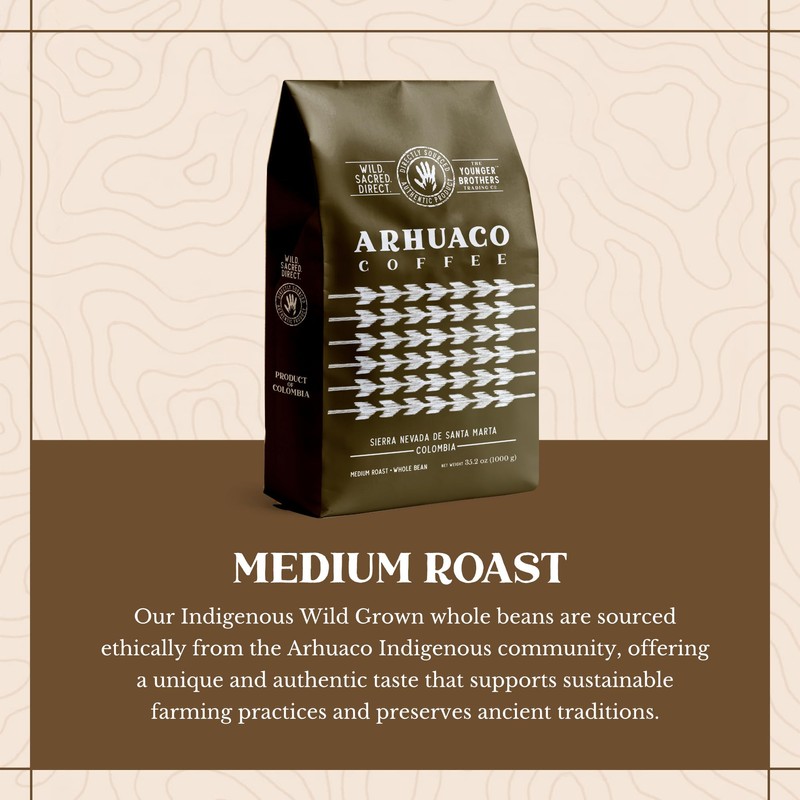 - SINGLE ORIGIN EXCELLENCE: Discover the rich heritage of Colombia's Sierra Nevada with The Younger Brothers Trading Co. Arhuaco Coffee. Our Indigenous Wild Grown Whole Beans are sourced ethically from the Arhuaco community, offering a unique and authentic taste that supports sustainable farming practices and preserves ancient traditions. Each bag represents a distinct place and tradition, providing a unique cup of coffee that reflects the land and the people.