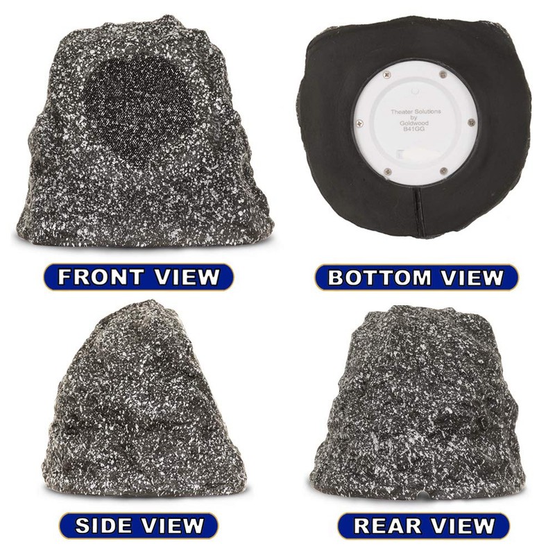 Theater Solutions by Goldwood B41GG Wireless Rechargeable Bluetooth Outdoor Rock Speaker System - Granite Gray, Set of 2, 120 Watts