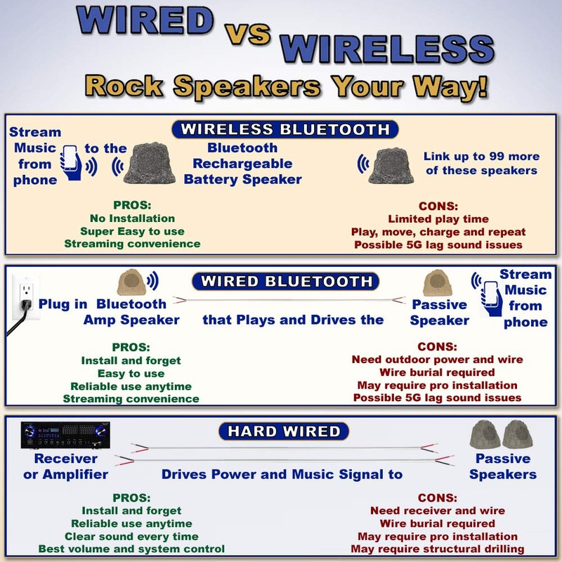• ROCK ON WITH OUR DISCREET OUTDOOR SPEAKER SYSTEM: Our innovative speaker set has the look of real rocks that blend in with nature, and lets you play and enjoy all of your favorite music in any outdoor setting