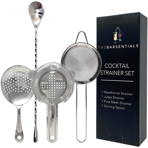 TheBarsentials Cocktail Strainer Set Stainless Steel Bar Tool with Stirring Spoon - Hawthorne Strainer, Julep Strainer, Fine-Mesh Strainer/Sifter