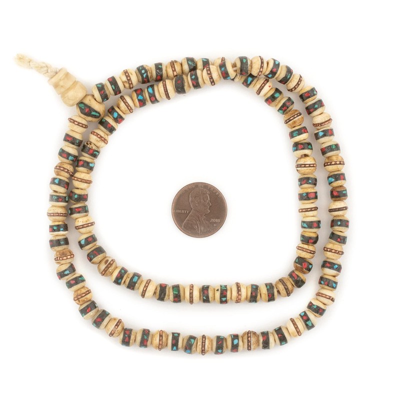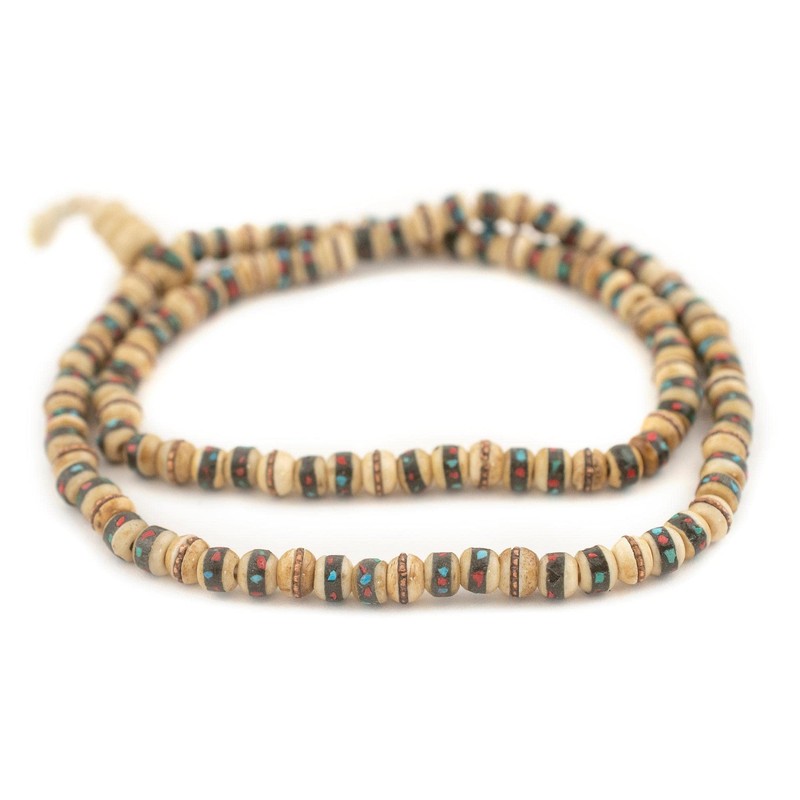 TheBeadChest Light Rustic Inlaid Yak Bone Mala Beads (6mm)