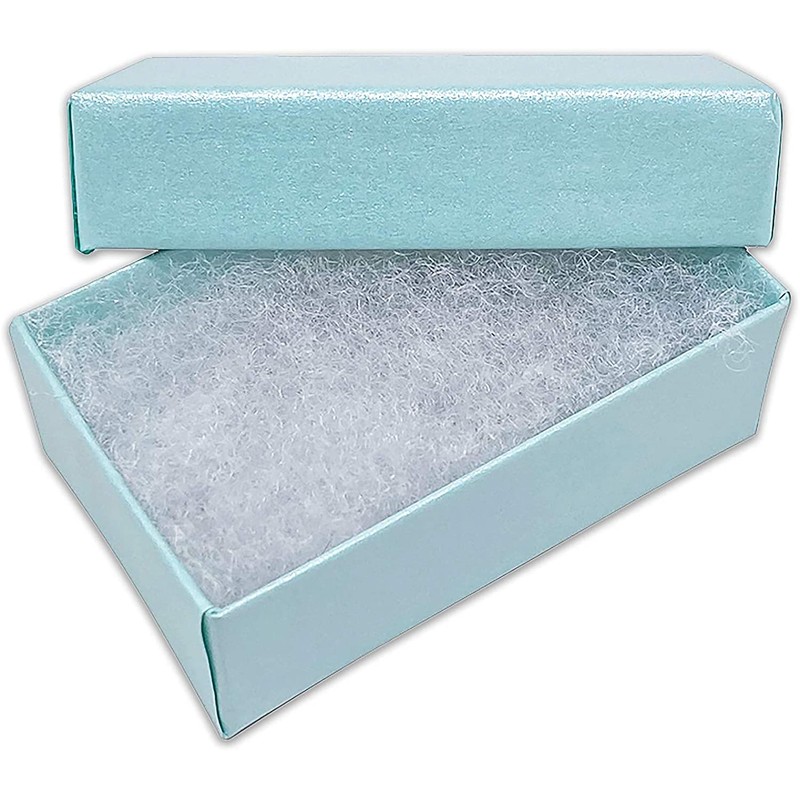 TheDisplayGuys - 25-Pack #21 Cotton Filled Cardboard Paper Jewelry Boxes Gift Case - Pearl Teal (2.6" x 1.6" x 1.0") - for Shipping or Storage